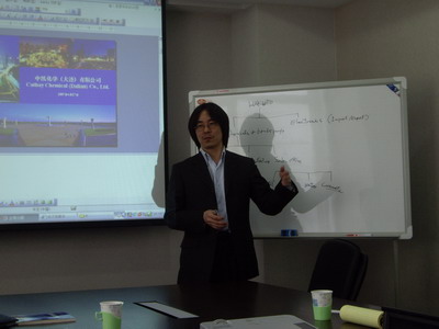 2007年4月27日,日本伯东株式会社(Hakuto Co., Ltd.)化学事业部经理小張修史(Shuji Kobari)先生到访中凯化学(大连)有限公司。伯东株式会社成立于1953年,年销售收入约1155亿日元(约合9.6亿美元)。伯东株式会社的工业化学品包括破乳剂、削泡剂、阻诟剂等,涵盖石化、造纸、水处理、化妆品等行业。双方就中凯化学与武藏化工研发的“超声波原油强化破乳”技术的推广以及伯东株式会社的工业化学品在中国市场的开拓等领域进行充分的洽谈并达成合作意向。