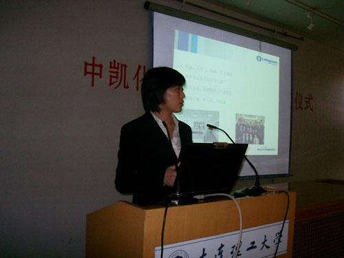 仪式上,首先由中凯化学总经理助理刘育彤女士为大连理工大学的同学介绍了中凯化学的企业发展情况。