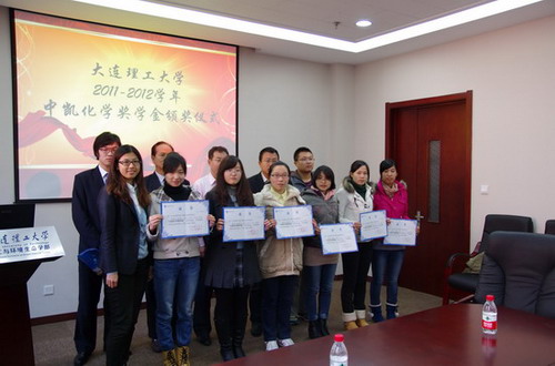 11月30日下午,大連理工大學2011—2012學年“中凱化學獎學金”頒獎儀式在西部校區化工綜合樓曙光廳舉行。這已經是中凱化學第三次來到大連理工大學參加頒獎典禮。