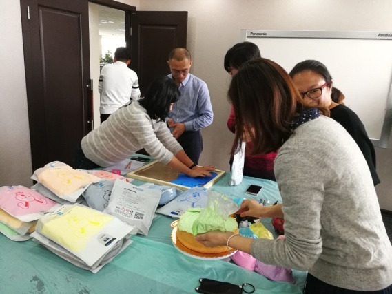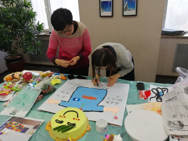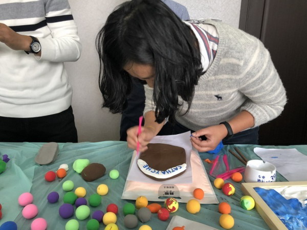 中凱化學紅、藍兩支隊伍各自領到活動組委會發放的用于制作蛋糕和粘土畫的原材料一份,要求在規定時間內完成兩幅符合12周年生日主題的作品。