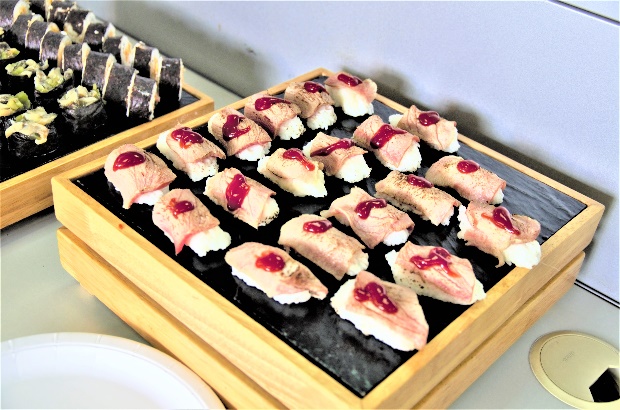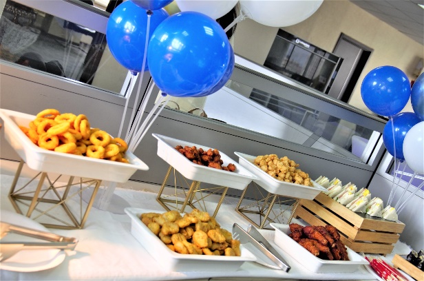 美味午餐時間到~自助冷餐的形式,專門聘請的專業餐飲團隊來布置,堪比五星級水準,光看圖片帶來的視覺沖擊就讓人口水直流,每一處細節都值得拍攝美照,各種款式的蛋糕精致的讓人不忍下口,各式飲品,小食,披薩,壽司……顏值與口感雙在線,著實讓中凱人一飽嘴福~
