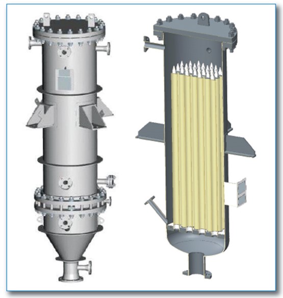 該裝置油漿設計最大處理量為25噸/小時,采用獨有的微孔金屬內表面過濾技術,配合為客戶量身定制的工藝流程控制,可降低油漿固含量至100ppm以下,實現90%以上的總體液收(油漿收率≥98%),且不需要機泵類動設備,能耗和維護費用極低,是目前最經濟、最高效的油漿凈化解決方案。