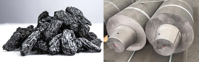 照片為京陽科技生產的高端針狀焦(接頭焦)及下游客戶生產的超高功率石墨電極接頭