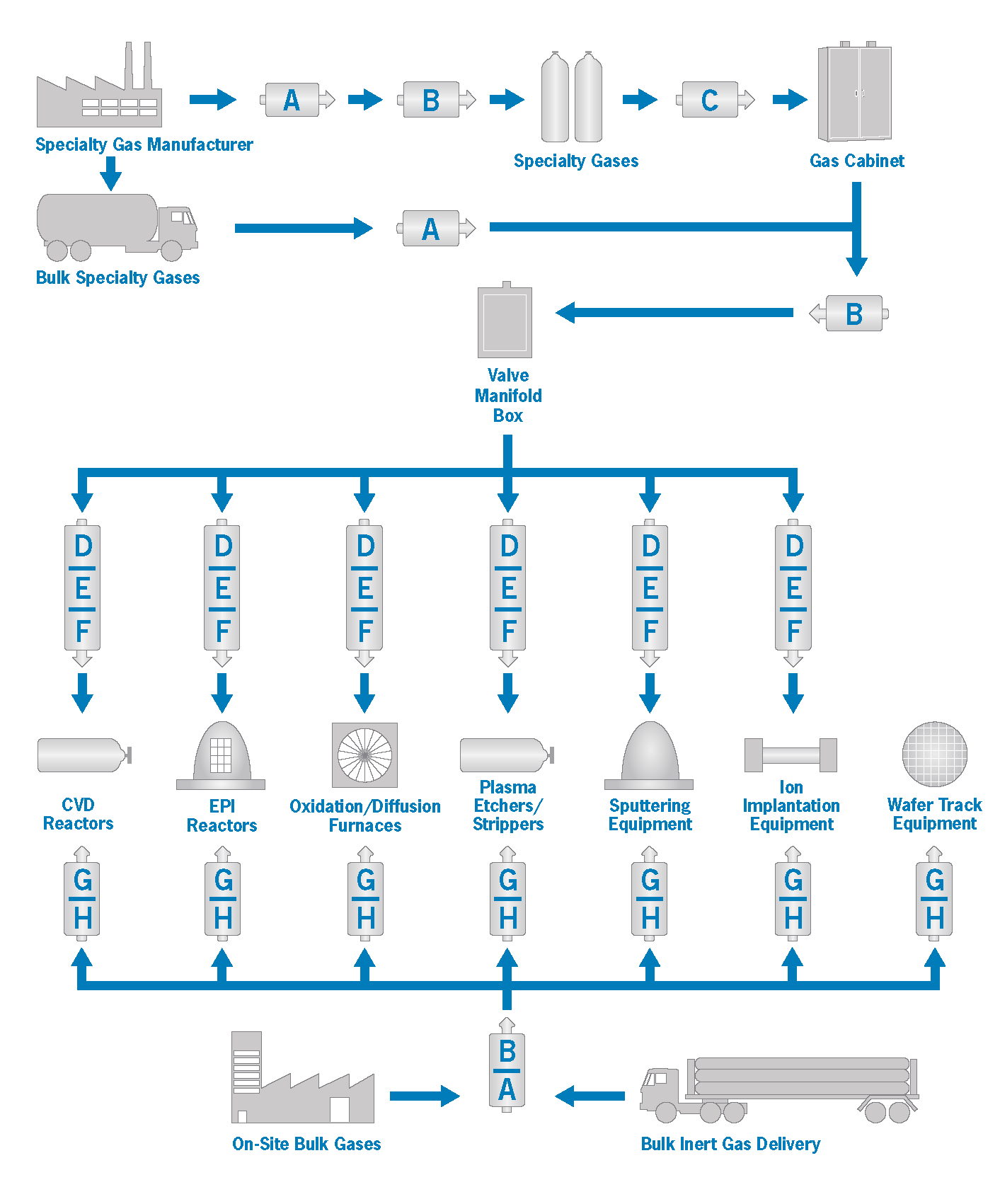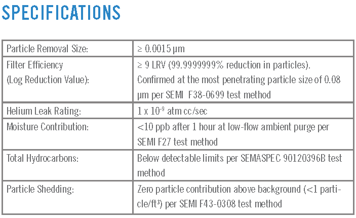 GAS-Shield高純氣體過濾器廣泛用于晶圓、CPU/GPU、集成電路、OLED等產品的生產和封裝過程中的特種電子氣體的過濾純化應用。過濾精度高達1.5納米,適用于最先進的3納米CPU制造工藝。全金屬結構可以達到非金屬過濾器3~5倍的使用壽命,并最大程度避免了消耗型濾材造成的環境污染。 |