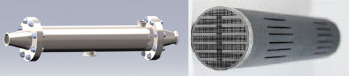 無機(jī)碳膜屬于最新一代無機(jī)膜技術(shù)。膜材料采用了一種新型復(fù)合炭材料,具有極高的親水性,膜的處理通量、抗污染能力、化學(xué)穩(wěn)定性、機(jī)械強(qiáng)度、耐磨性和耐高溫性等方面性能優(yōu)異。膜芯結(jié)構(gòu)采用一種類似載體式結(jié)構(gòu)設(shè)計(jì),組件集成度高,強(qiáng)度高,密封性好,組裝維護(hù)方便。