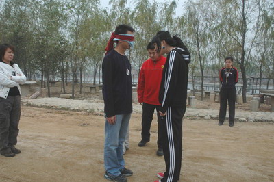 哈哈!晚間稍做休息后,第二天上午,我們來到了一條懷柔的小湖邊,真是風(fēng)景這邊獨(dú)好啊!遠(yuǎn)山的小路蜿蜒,山澗的溪水潺潺,耳邊的清風(fēng)徐徐......就是在這樣一個(gè)美麗的地方開始了我們兩支隊(duì)伍的對(duì)決,這其實(shí)也是每支隊(duì)伍的集體力量的一次挑戰(zhàn)。在這里,沒有性別、沒有高矮、沒有強(qiáng)弱,每一支隊(duì)伍都要擰成一股繩,形成一股強(qiáng)大的力量去戰(zhàn)勝我們遇到的一切困難!“蛟龍出海”,在這樣一個(gè)項(xiàng)目里,隊(duì)員的腿與腿之間是用繩子綁著的,手與手之間是相互挽住,并排站著。大家都知道,排出這樣的一個(gè)陣型如果要挪動(dòng)是有一定難度的,需要每個(gè)個(gè)體的緊密配合,整體才會(huì)動(dòng)起來。“楊遛郎”隊(duì)在比賽中獲得了勝利。從中我們體會(huì)出,想要在競(jìng)爭(zhēng)中取勝,頭腦是必須的,毅力也是必要的,最重要的是要明確目標(biāo)的所在位置。當(dāng)然三者缺一不可,少了其中任何一個(gè)都有可能落后。