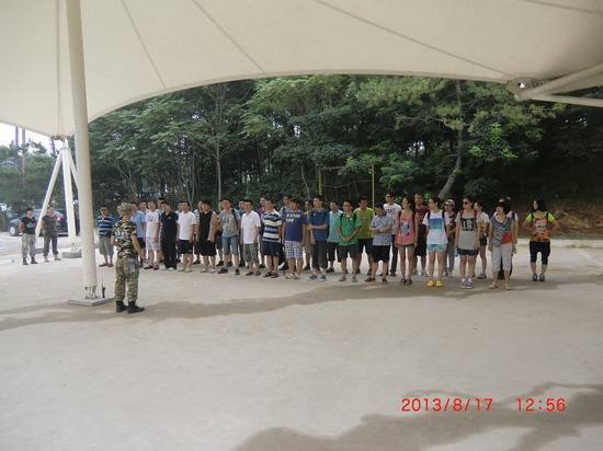 地點選在付家莊公園內(nèi),中午12點,大部隊陸續(xù)集齊,帥氣干練的女教官一聲哨響,男女分別一列縱隊,由她和另一位教官帶領(lǐng)我們一行人進入基地。