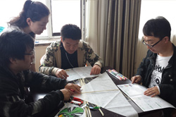 一共分成了6個小組,每個小組得到不同形狀不同制作難度的兩個風箏,整個過程充滿了歡聲笑語,畫圖時,每個小組都創意十足,顏色五彩繽紛;制作風箏骨架的組員對照說明書,認認真真;攝像和拍照的組員記錄了過程中的點點滴滴。