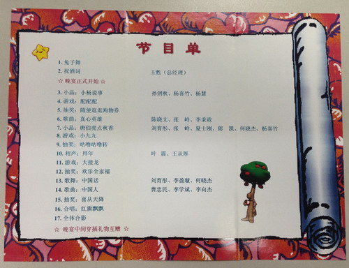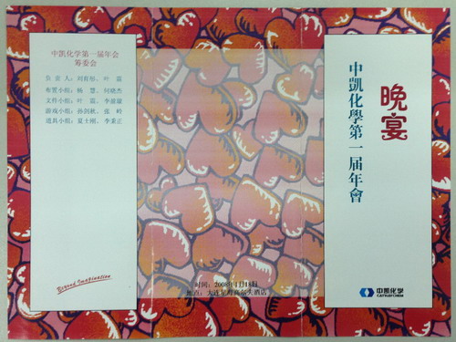 這是我當年設計制作的略顯青澀稚嫩的第一屆年會晚宴節目單,現在也成為了美好的紀念。還有當年的“紅毯”和“簽字墻”,都已載入中凱的歷史。