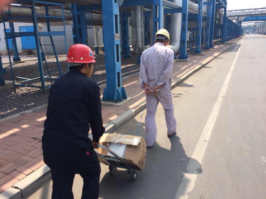 忘不了那時的焦急。為了使電機(jī)能盡快維修返廠,不耽誤整體調(diào)試進(jìn)度。在那炎炎烈日下,花了一個多小時,用拉桿車把電機(jī)一步一步拉出廠。