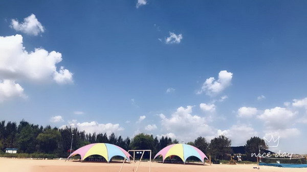 活動選址在開發區金石灘。十里黃金海岸沙灘的美景,去過的人都知道,沙子簡直不要太細膩,光著腳丫在上面走著,軟綿的沙子滲入腳趾縫隙,海浪時不時的拍打腳面,仿佛在做著天然足浴。