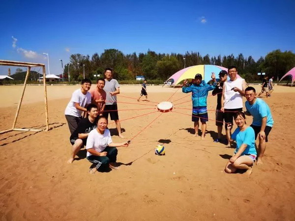 拓展比賽開始,這個項目對大家來說并不陌生,考驗的是每個隊伍的團結協作能力。