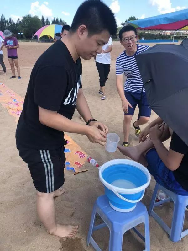 俗話說“沒病走兩步”,這可不是一句小品臺詞,此時,手腳并用,正著反著,交叉著,來一遍,極大考驗左右腦調配的活動,如右圖,海闊天空隊的張熙自告奮勇,為了取一杯水完成任務也是拼了,從踉踉蹌蹌走到如履平地,這勁頭,怕是年度活動積極分子拿不到吧~